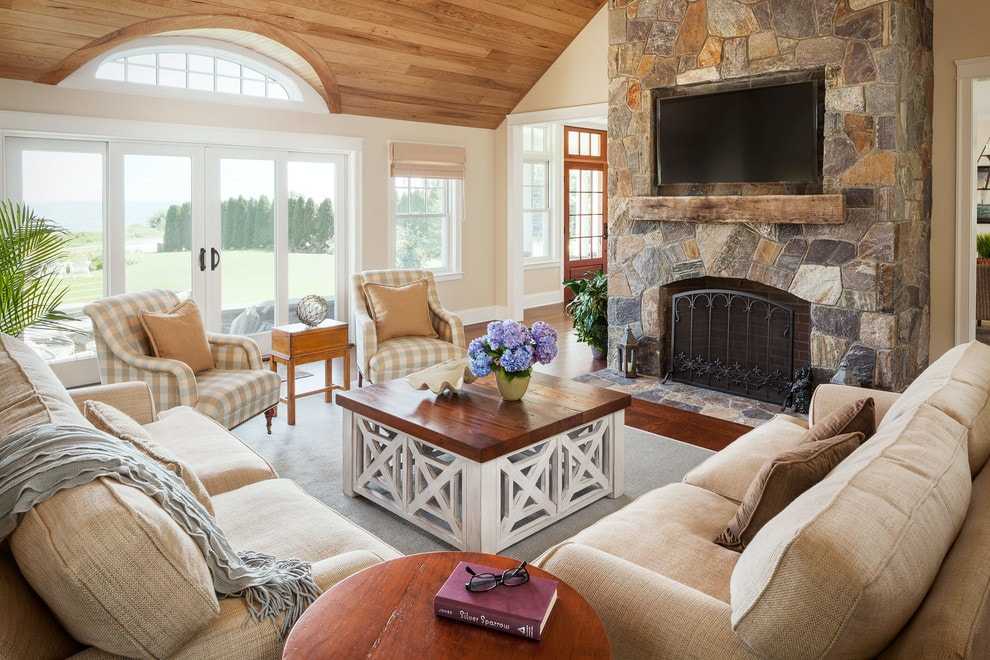 Прованс, кантри или рустик в основу ставит все натуральное или создающий данный эффект. Наиболее выгодным решением для такого дизайна станет стандартный угловой, встраиваемый или пристенный камин. Отличительной особенностью этих стилей является натуральность и естественность. Выбор стоит остановить на очагах с порталом под дерево, можно украсить его натуральными материалами или выделить зону соответствующими панелями.