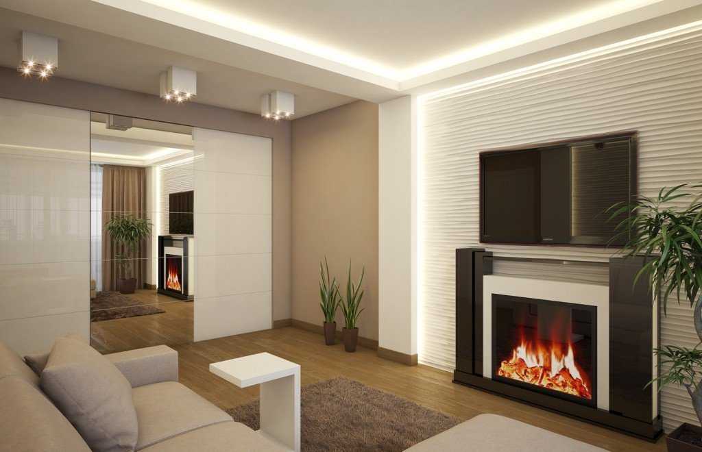 Дизайн гостиной с электрокамином