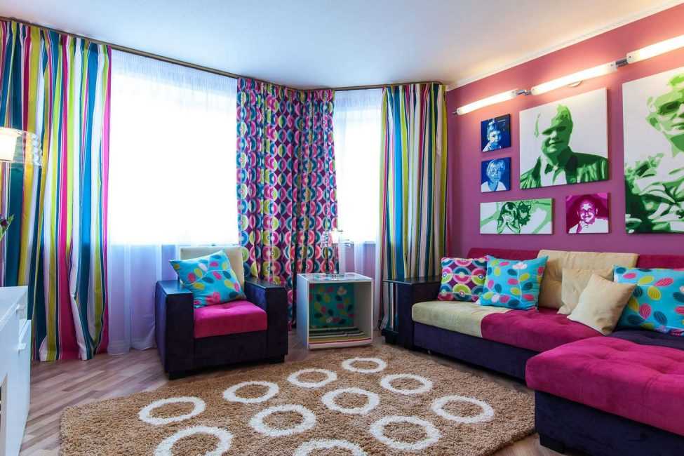 Таким образом, внимание находящегося в комнате человека рассеивается между несколькими деталями, ярко выделяющимися на белых стенах. В небольшой комнате, где важен каждый метр пространства, такое расположение будет предпочтительнее