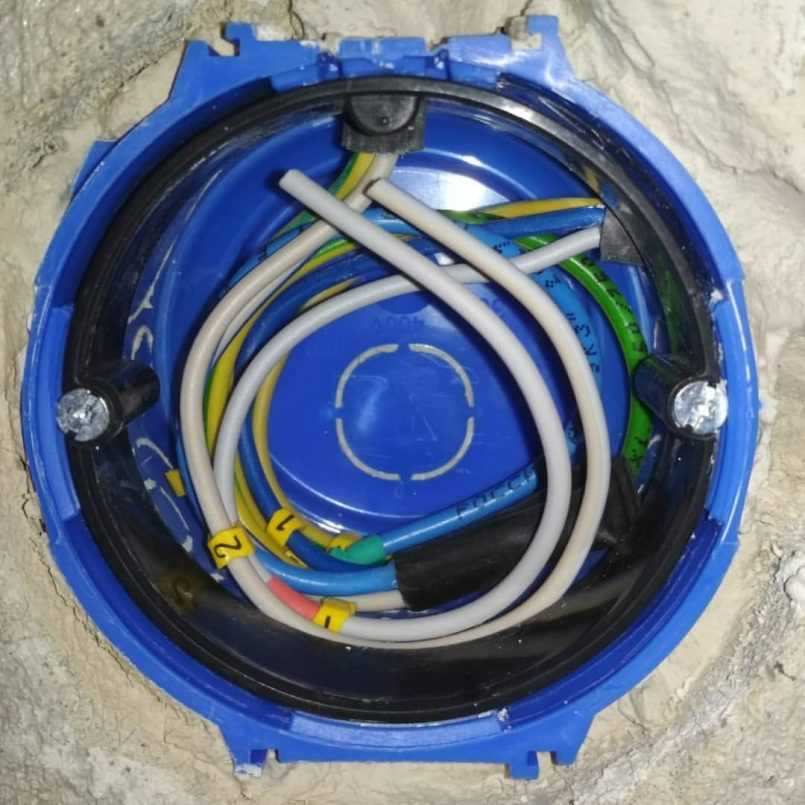 Имея готовое отверстие можно прорезать штробу в стене к потолку, где располагается распаечная коробка, чтобы сделать отводку питающего кабеля. Для компенсации на погрешность, заложенный кабель берется длиннее на 30-40 см. В дальнейшем излишки можно будет отрезать. Переходя к прокладке кабеля и подключению к распаечной коробке потребуется обесточить помещение.