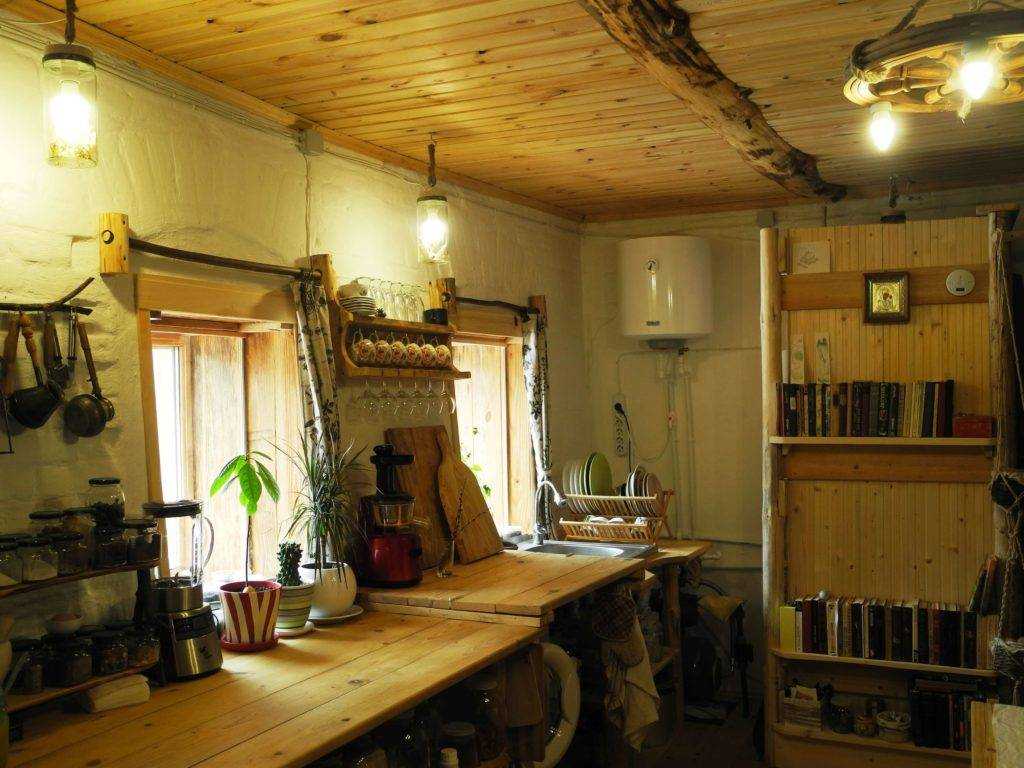 Финишную внутреннюю отделку вагонкой мы стали делать гораздо позже, когда были решены все насущные проблемы с водой, канализацией, необходимой мебелью. Зашили вагонкой и покрыли льняным маслом. Свою изюминку в интерьер добавили «фальш-балки», которые изготовили из горбыля. Этот элемент из рустикального стиля дополнил наш интерьер.