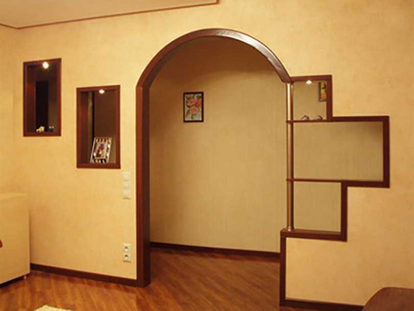 В декоративном оформлении конструкций практически нет запретов и табу. Их отделку осуществляют с использованием: камня, панелей, дерева, кирпича, обоев, краски, штукатурки, лепнины и росписи. Для арок с нишами и полками зачастую прибегают к комбинированным приемам, чтобы выделить акцентные зоны. Сочетания тоже нужно подбирать грамотно, чтобы оба материала были в композиционной картине равнозначными.