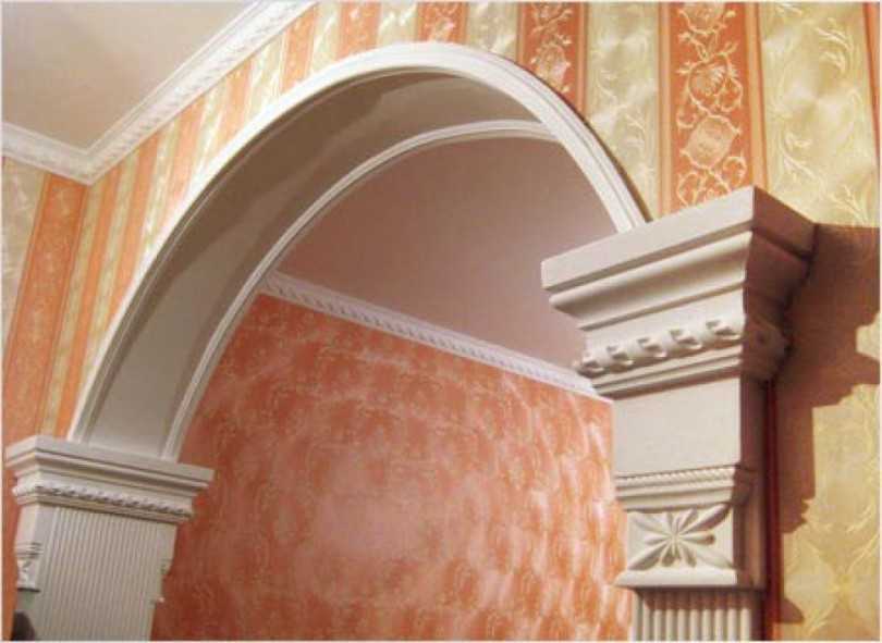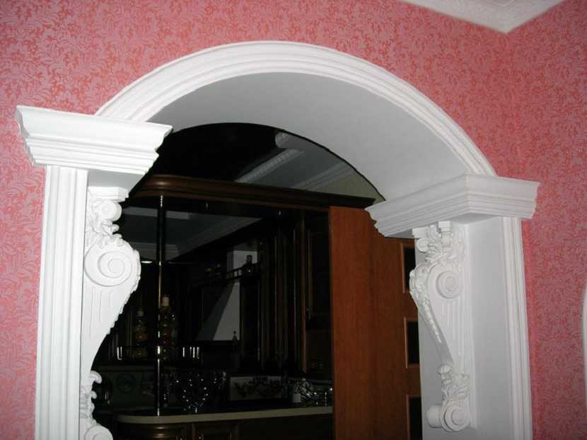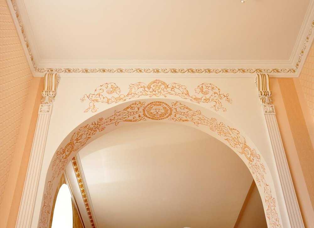 Межкомнатные арки из гипса выглядят достаточно эффективно, а своей конфигурацией чаще всего напоминают атрибутику Древнего Рима. Гипсовые фигуры приобретаются по отдельности или отливаются самостоятельно, после чего приклеиваются к поверхности подготовленного арочного проёма в заданном порядке.