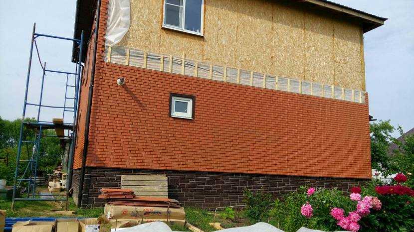 Дом, обшитый OSB панелями, покрывается декоративными панелями на вентилируемый фасадИсточник makebestphoto.ru