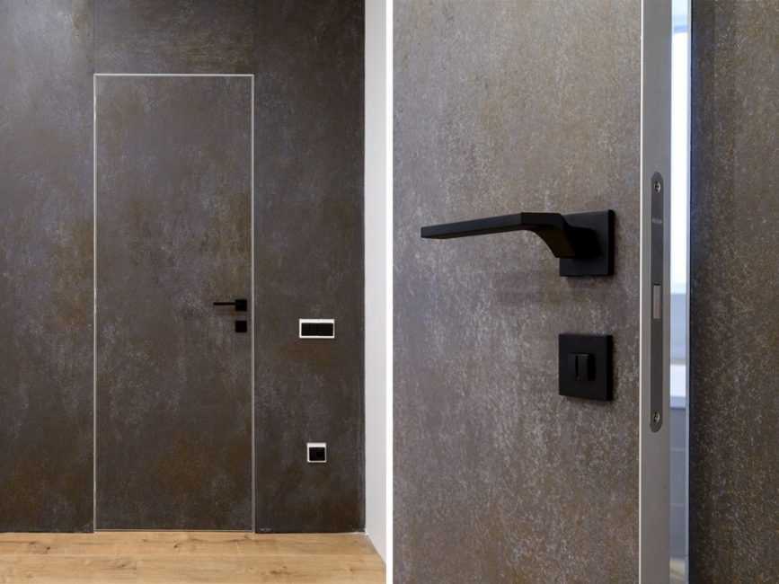 Дверь под каменьОтличный вариант для маскировки двери в кабинет или любое другое помещение. Для этого используется декоративная плитка с соответствующим узора;