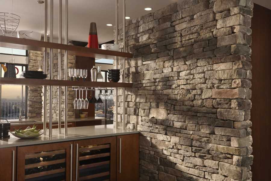 Чтобы люди могли использовать каменное оформление в домашней обстановке, был придуман аналог горной породы — декоративная плитка под камень. Она стоит дешевле натурального материала, однако не проигрывает ему в красоте и роскоши.