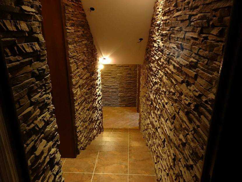 Самый простой и менее затратный способ, это обрабатывать помещения искусственным материалом. Его порой трудно отличить от настоящего, а это значит, что он также способен облагородить помещение, как и настоящий камень. При изготовлении этого камня применяют красители, а также цемент, песок и глину.