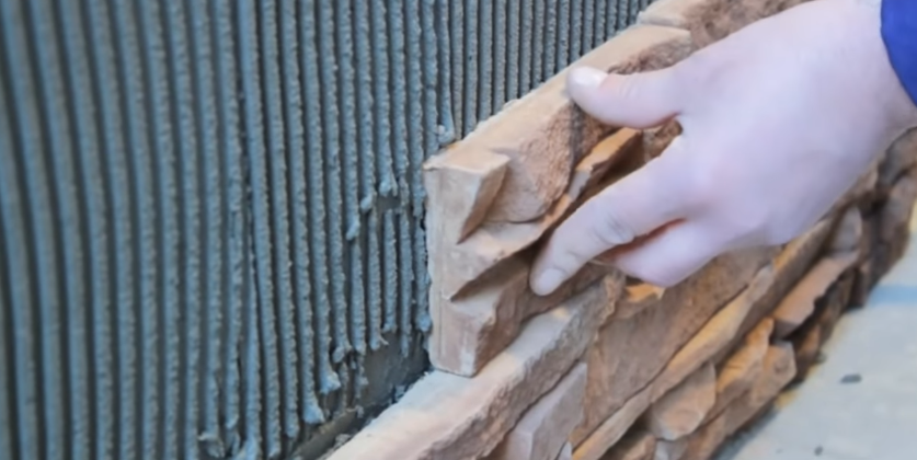 Для приклеивания искусственного декоративного камня используют те же клеевые смеси, что и для натурального. Кладка этих облицовочных материалов мало чем отличается от кладки кафельной плитки. Бесшовный метод более быстрый и легкий, так как исключены этапы заполнения и расшивки зазоров.