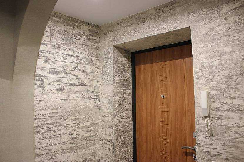 Прихожая Отделка стен. Такой вариант указывает на высокий статус и наличие чувства вкуса хозяев квартиры. Рекомендуется использовать для декорирования одной или нескольких зон, или же полностью облицевать одну из стен. В зависимости от цвета можно добиться разных визуальных эффектов: так светлый зрительно расширяет пространство, в то время как темный поглощает его;