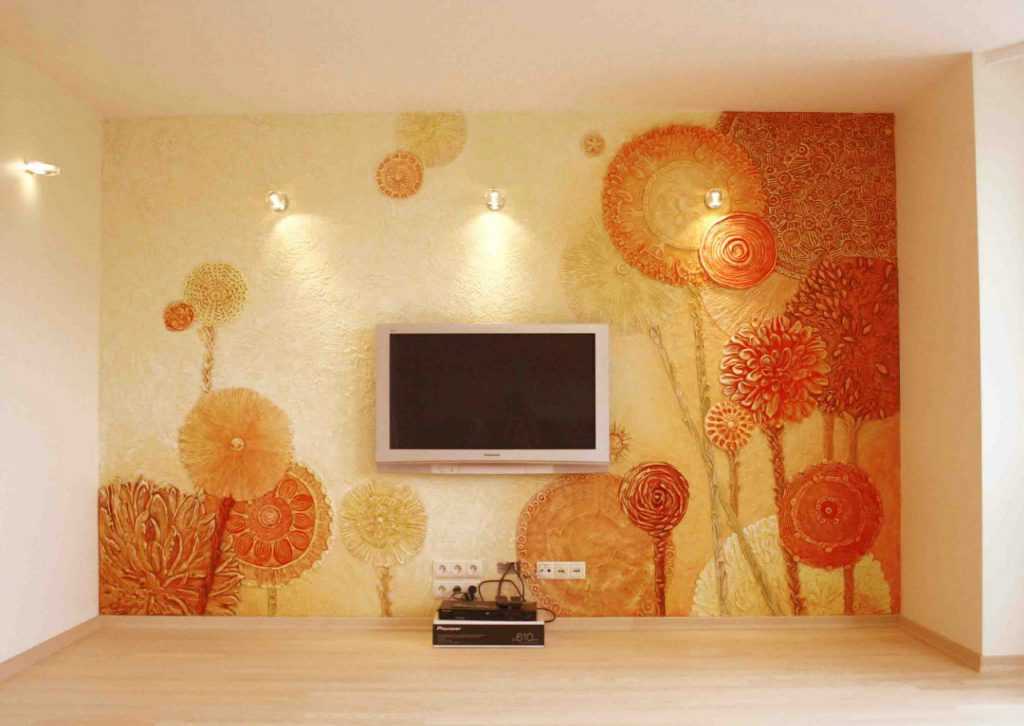 Отделка стены декоративной штукатуркой будет отличным вариантом