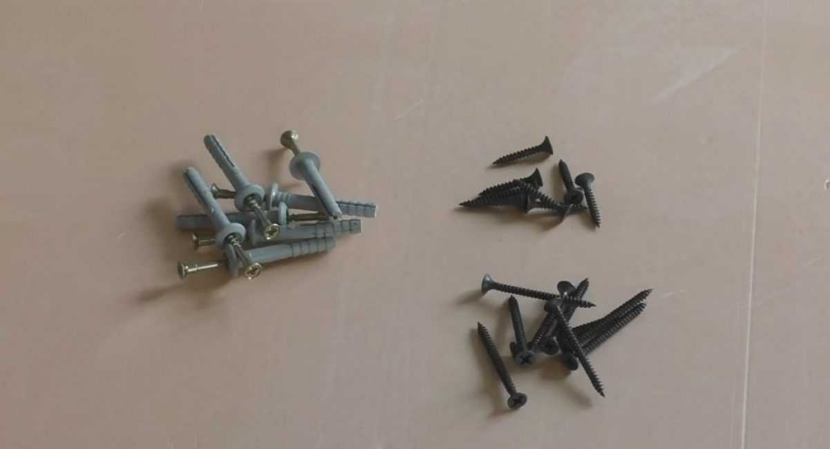 Крепёж: дюбель-гвозди 6х40, саморезы 2,5 и 4,5 см.