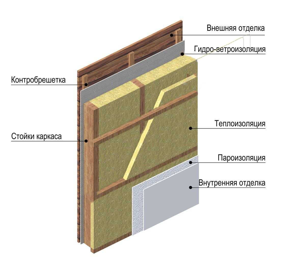 Типичный грамотный пирог стены каркасного дома по финской технологии должен включать: