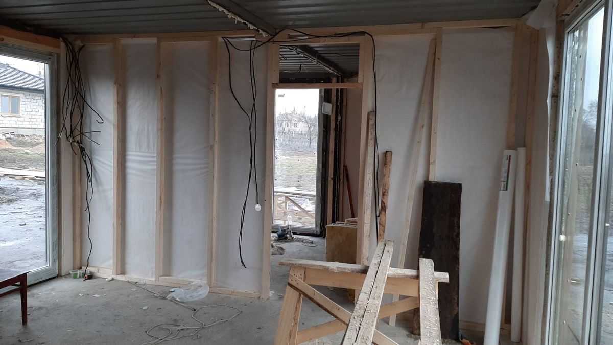 Для внутренних перегородок, по словам Павла, можно использовать любые традиционные материалы — блоки, кирпич. Но в доме Станиславы и Игоря перегородки сделали каркасными.