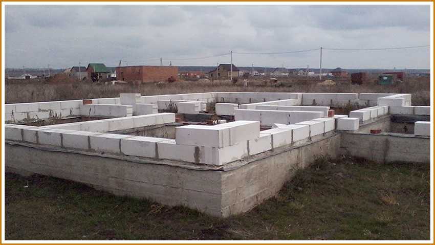 Фундамент. Пеноблоки можно использовать для фундамента, однако стоит учесть, что данный материал впитывает влагу как губка. Этот вопрос необходимо решить на этапе возведения фундамента, путем использования качественной гидроизоляции.