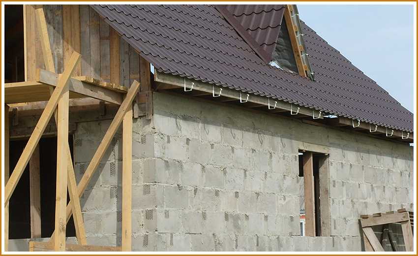 Это единственный минус в кладке, однако, при дальнейшей укладке стоит следить только за вертикальностью рядов. Обязательно нужно положить гидроизоляцию между стеной и фундаментом, чтобы предотвратить проникновение влаги в стены дома. Важный нюанс, необходимо распределять нагрузку над оконными и дверными проемами с помощью несъемной опалубки.
