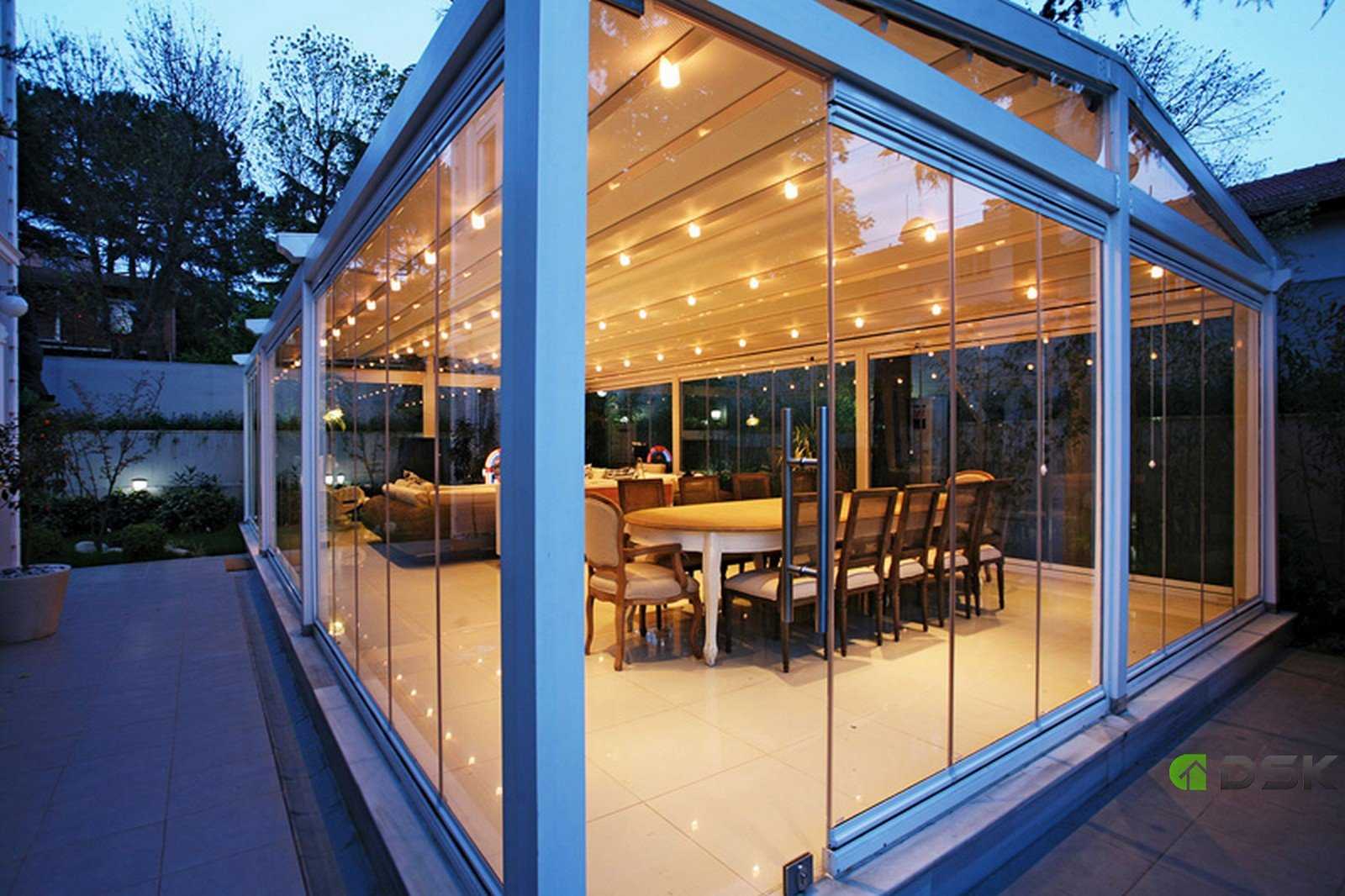 Большие стеклянные поверхности обеспечивают помещение лучшей освещенностью. При этом нижнюю часть конструкции можно сделать из более прочного материала