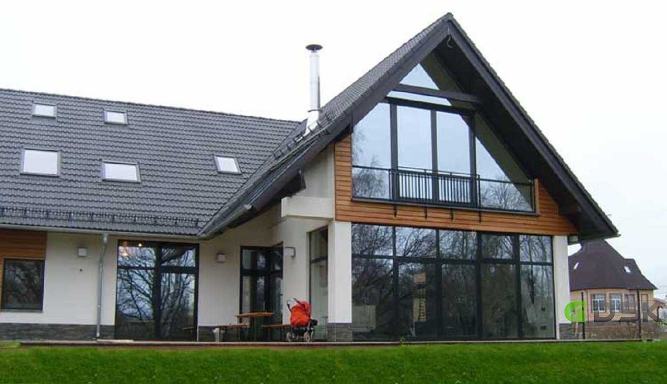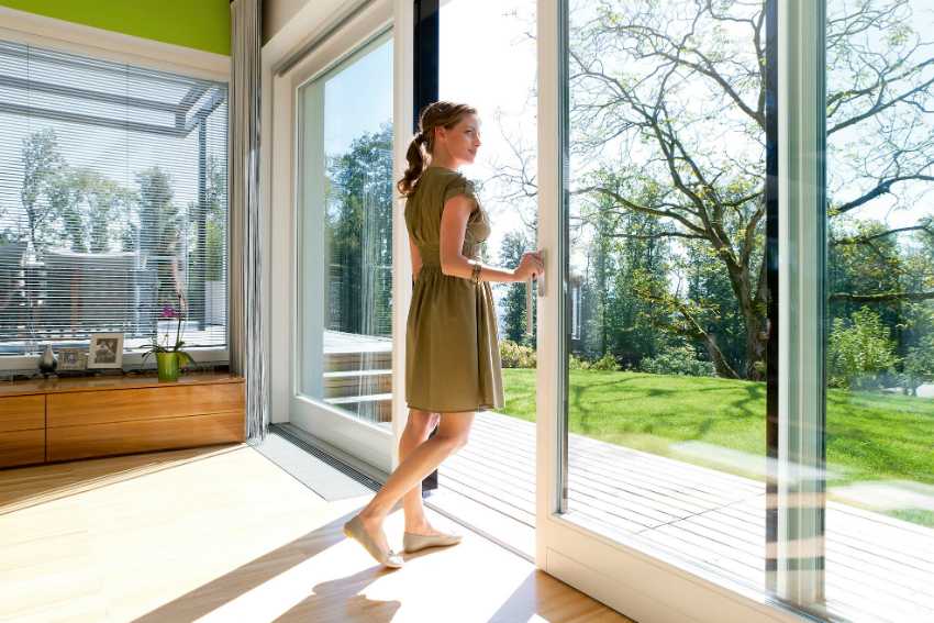 Дом с панорамными окнами может иметь окна с различным типом открывания: