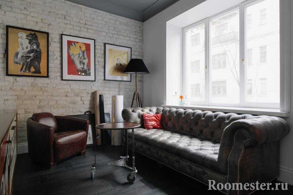 Окна тоже не нуждаются в украшении, поэтому шторы там не нужны. Окно можно оставить не зашторенным, но если это кажется совсем неуместным, то можно повесить жалюзи. Полы тоже должны остаться открытыми, ковры в такой обстановке не будут смотреться. Плакаты, старые фото, часы на стенах создадут нужный настрой интерьера.