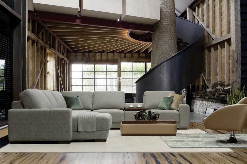 Мебель часто изготавливается из дерева и металла. Причем, чем грубее текстура дерева, тем лучше. Мягкая мебель должна быть простых форм, чтобы не спорить с активными фактурами в отделке. В обивке нередко можно увидеть кожу. Это стандартный материал для промышленной стилистики, так как он тоже отличается активной фактурой. Но и тканевая обивка допускается.