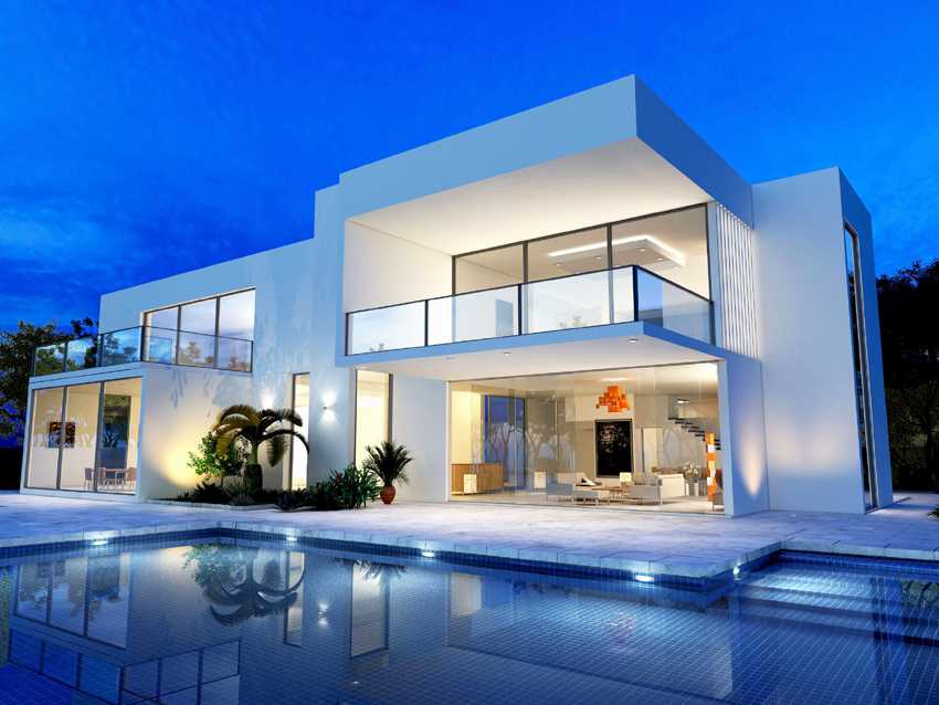 При создании интерьера и экстерьера дома в современном стиле обязательно вносят роскошные детали, которые могут быть частью либо основой дизайна. На фото домов в стиле модерн часто можно увидеть необычные балконы и эркеры, арочные дверные и оконные проемы. Необходимое условие интерьера – высокие потолки различной кривизны и формы.