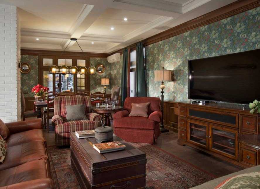 Бытовую и цифровую технику, охранные системы стараются спрятать под стенными деревянными панелями, ширмами или фасадами мебели. Такая маскировка сохраняет старинную атмосферу жилища.