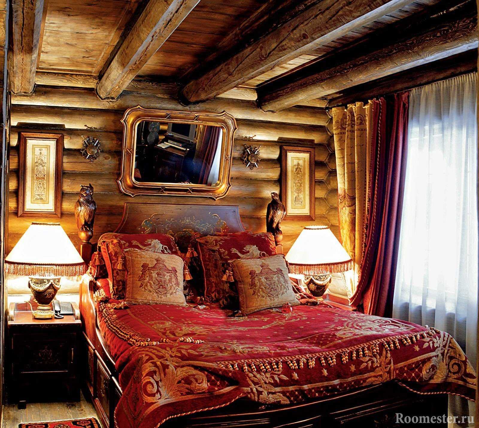 Разные вариации интерьеров тяготеют к охотничьему или этническому стилям. В первом случае используются шкуры, гобелены, охотничьи аксессуары и трофеи. Во втором – характерные национальные элементы того или иного региона, на твой вкус.