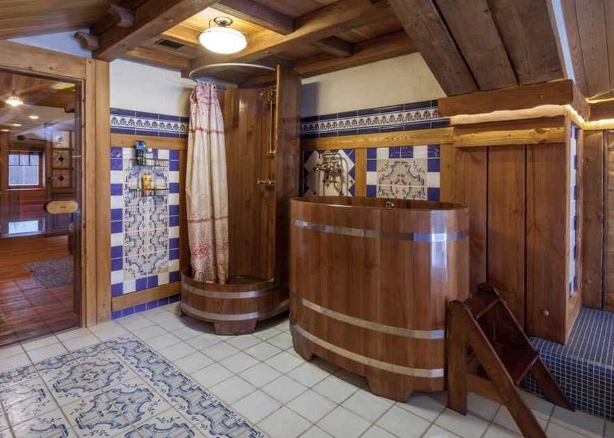 Можно вынести сауну на цоколь с хорошей теплоизоляцией или выделить под нее комнату в доме. Это удобно, ведь не понадобится делать отдельный фундамент, систему водоснабжения и канализацию. Домашнюю сауну можно дополнить уличным бассейном или просто террасой для отдыха летом.