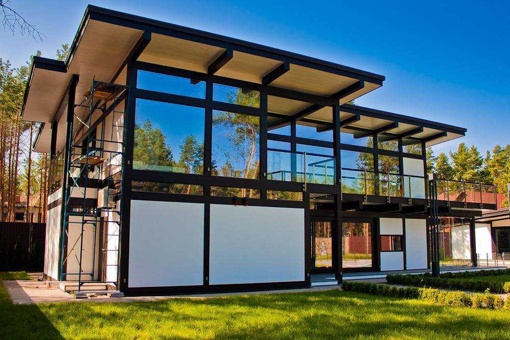 - Большая площадь остекления. Чтобы обеспечить зданию высокую прочность, лучше применять бронированные окна либо триплекс.