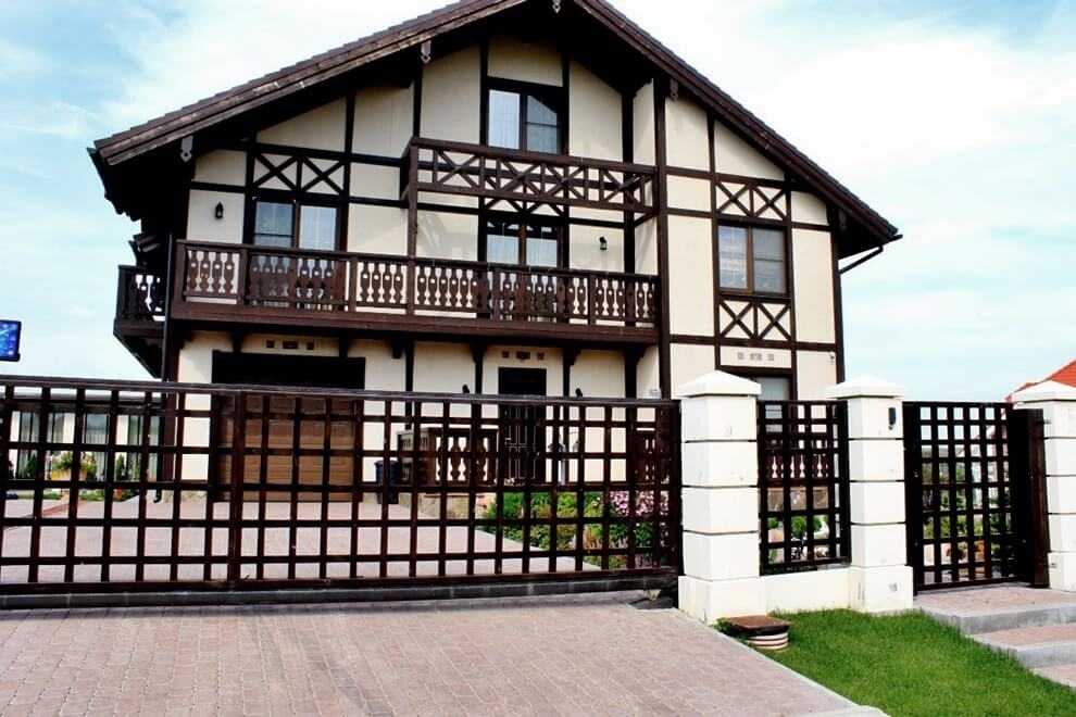 Английский кантри. Его можно узнать по деревянной обшивке стен, массивным оконным и дверным наличникам, а также продольным деревянным перилам балконов. Внутри такого дома все выглядит изысканно и элегантно: стены и даже потолки часто обиваются тканью, а мебель искусственно состаривается.