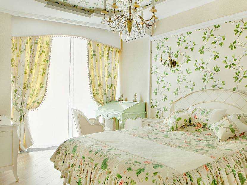 Широкие шторы в стиле прованс для просторной спальниИсточник bucwar.ru