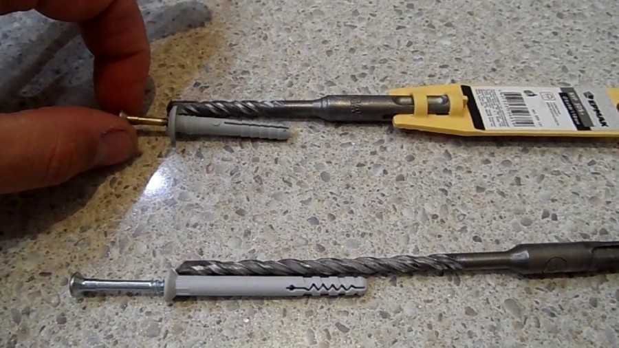 Важно и то, чтобы дюбель был по своей длине на 5–6 мм короче пробиваемого отверстия.
