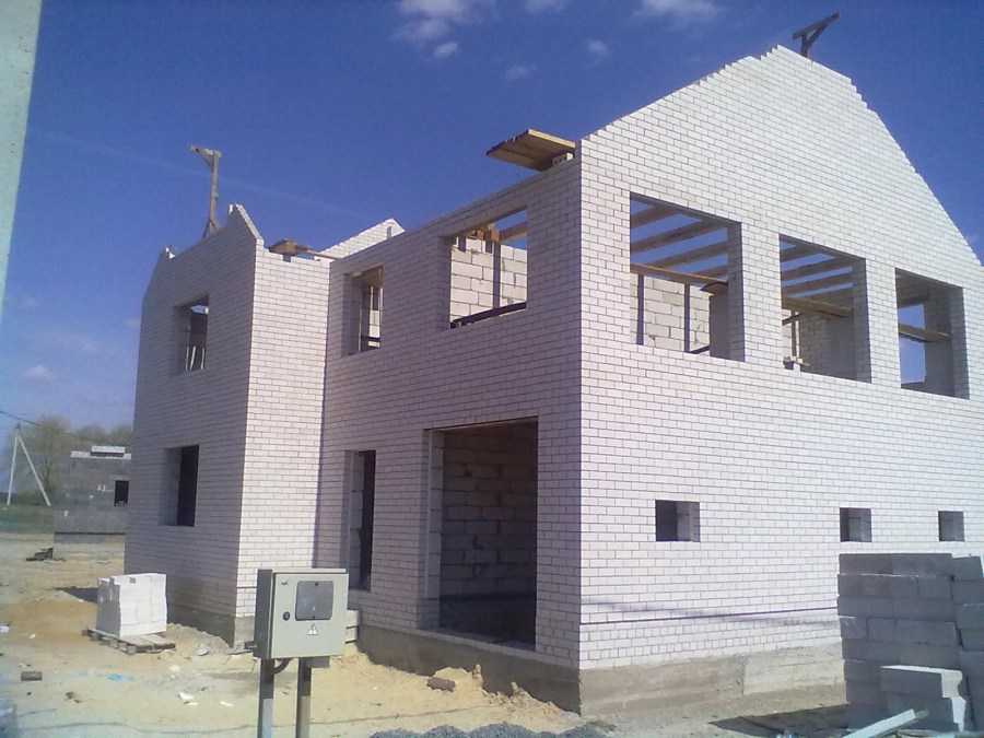 Оптимальным вариантом для строительства, кроме приведенных выше, является возведение дома из газосиликатных блоков. По поверхности цоколя для гидроизоляции укладывается рубероид, после чего возводятся стены из блоков. Строительство цен производится аналогично их строительству из кирпича, но значительно быстрее благодаря большим размерам блоков. Вместо дорогих бетонных перемычек в дверных и оконных проемах используются уголки из металла.
