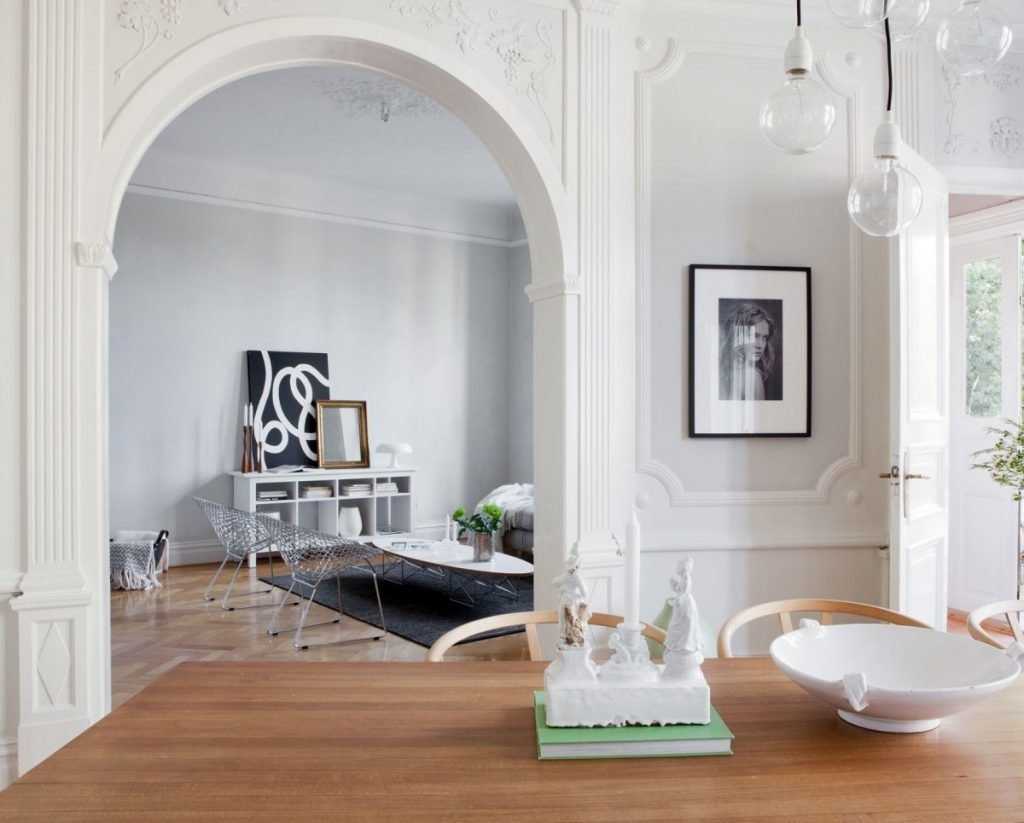 Декорирование арки определяется стилем помещения. Для классицизма и барокко характерны арки с обилием лепнины на декоративном наличнике, а минимализм предпочитает редкие декоративные элементы в незначительном количестве.
