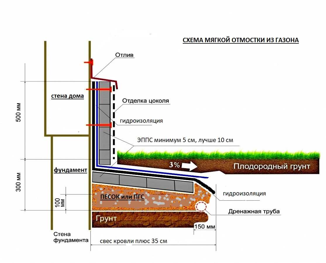Схема обустройства мягкой отмостки