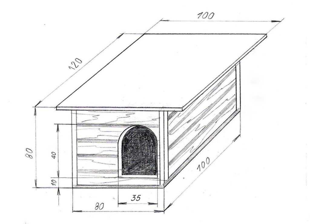 Размеры собачьей будки лучше делать сразу на вырост, учитывая это в чертеже.