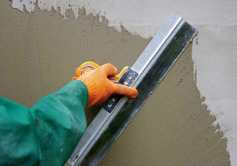 Первоначально подбирается стартовая шпаклёвка, которая содержит в себе мелкий песок, что позволяет наносить её слоем в 3−4 мм. Раствор равномерно распределяется по стене широким металлическим шпателем, заглаживающим мелкие неровности. Шпаклёвка быстро засыхает, поэтому разводится она маленькими порциями в соответствии с пропорциями, указанными на упаковке.