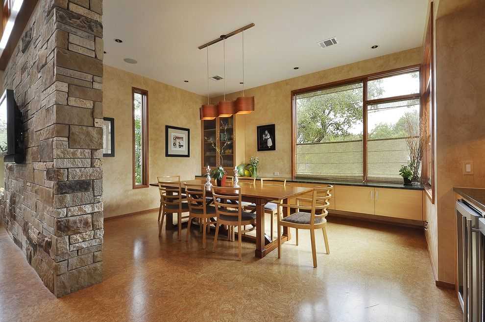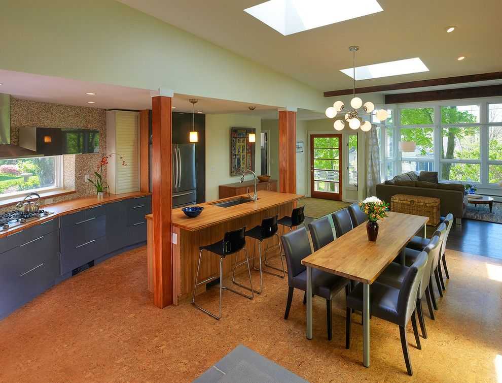 Пробковое покрытие в кухне, оформленной в стиле хай-тек