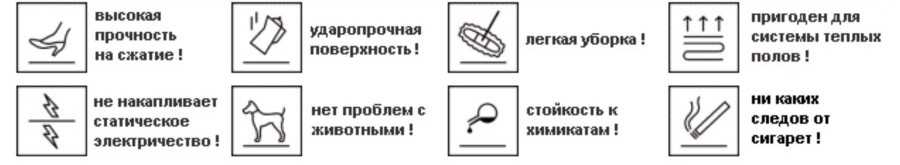 Высокую устойчивость к разнообразным повреждениям (царапинам, стираниям поверхности материала), весовым нагрузкам, вмятинам и выгораниям под прямыми солнечными лучами. Качественное покрытие легко переносит передвижение мебели или любых других тяжелых предметов интерьера о время смены обстановки в квартире.