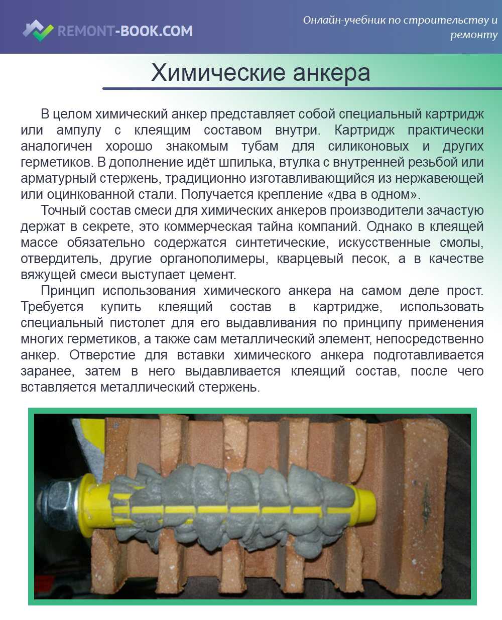 Из достоинств отметим отсутствие необходимости установки вертикальных опор под конструкцию, конечно, в зависимости от ее общего размера. Химический анкер не нарушит внутреннюю структуру кирпича – только аккуратно просверлите отверстие.