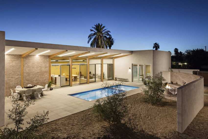 Изогнутая плоская крыша, поддерживаемая тонкими стальными колоннами, и прозрачные стеклянные стены делают здание единым целым с окружающим миром. Гранитная глыба, часть которой находится снаружи, а часть возвышается в гостиной, фактически становится центром всей композиции. Нимейер подчеркивает, что все барьеры и границы с внешним миром условны.