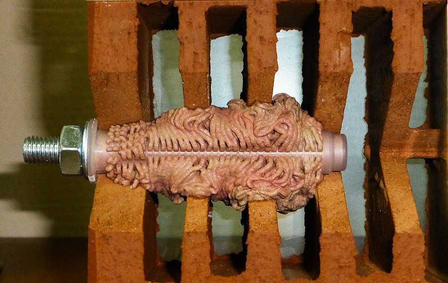 Важно убрать все мельчайшие частицы раскрошившейся стены, чтобы клей качественно схватился с основанием. Затем вставляют ампулу или капсулу с клеем, и потом устанавливают анкер