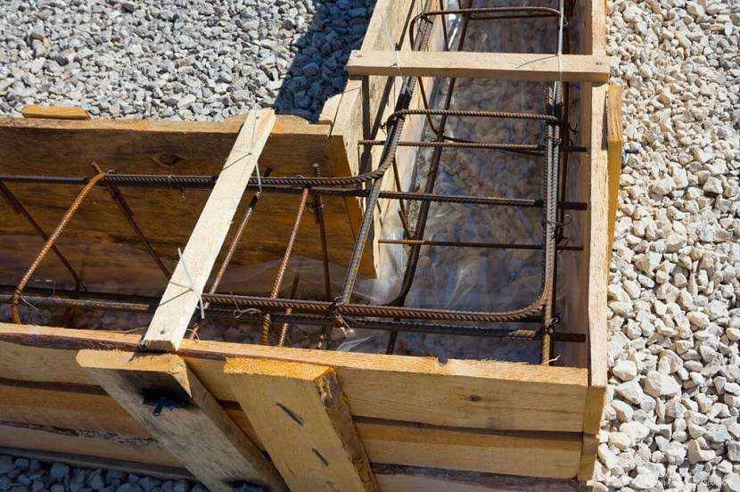 Им надо уделить особое внимание, поскольку они связывают стороны фундамента. Дополнительная жесткость обеспечивается дополнительными вертикальными стойками, которые закладываются вдвое чаще.
