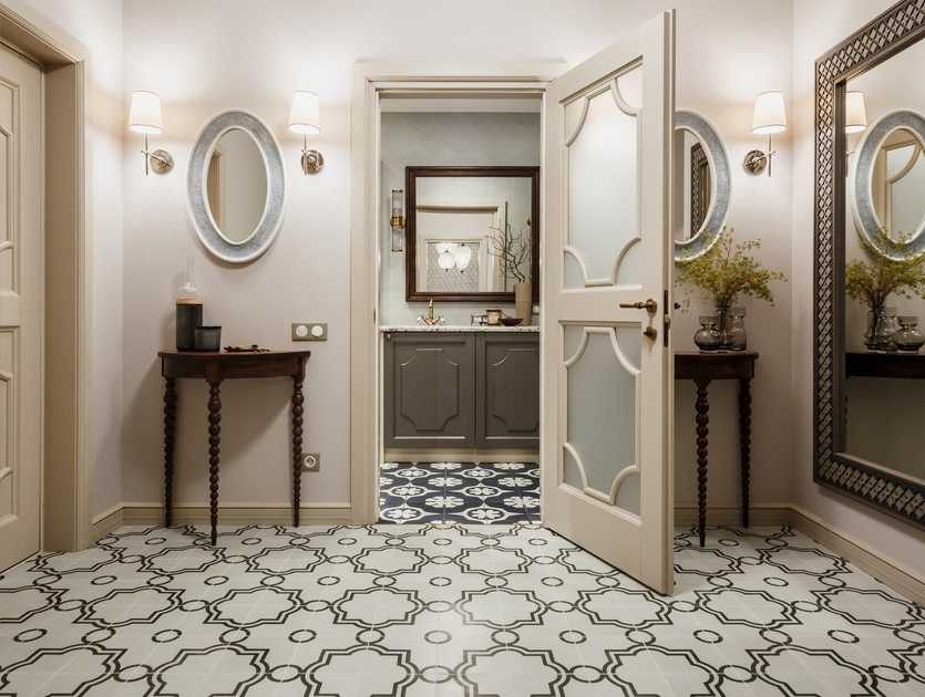 Это один из самых распространенных материалов для пола в грязных и влажных зонах. Кафельный пол в прихожей обладает целым рядом преимуществ, которые ценят многие дизайнеры.