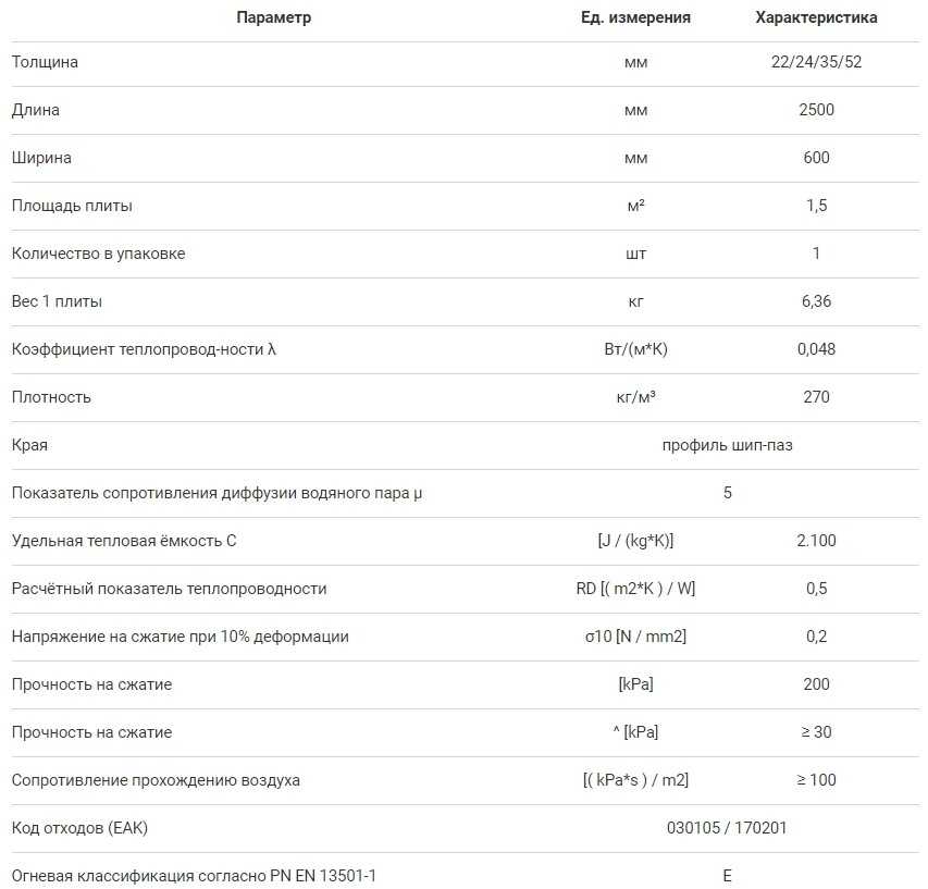 материал. Коэффициент теплопроводности соответствует показателям 0.039-0.046