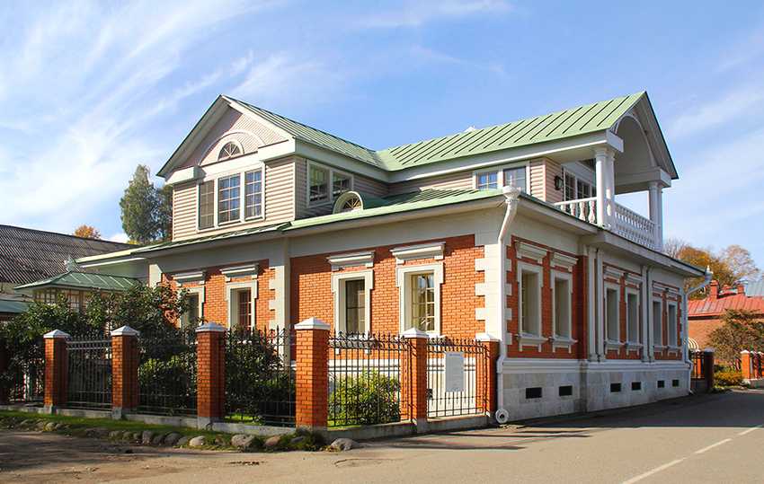 Кроме того, мезонин выглядит красиво и респектабельно. Дом сразу воспринимается не как небольшое деревянное одноэтажное строение, а как небольшой двухэтажный особнячок. Архитектурной особенностью дома с мезонином является симметричность главного и дворового фасада, а также портики по центру здания, боковые стены без окон и четырехскатную крышу.