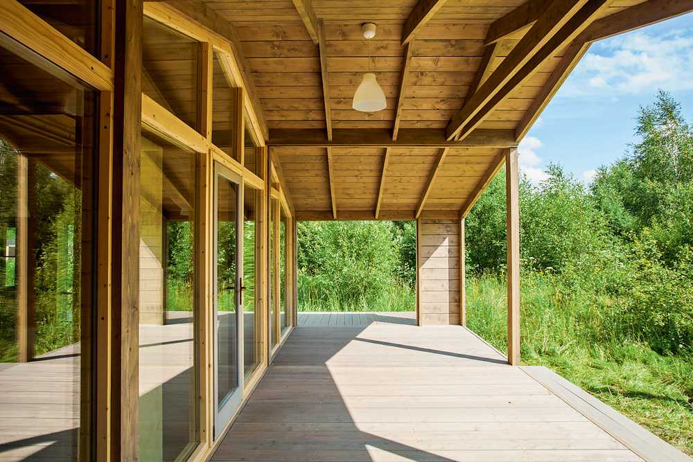 Размеры комнат по меркам загородного жилья невелики (как правило, не более 16 м2), а средняя высота потолков составляет скромные 2,6–2,7 м. Зато все архитектурные и дизайнерские решения подчёркнуто современны: владельца порадуют как минимум одно панорамное окно, уютная терраса, жилые антресоли, модная отделка, например — под корабельную доску. Впрочем, не обходится и без явных просчётов. Скажем, в большинстве домов отсутствуют прихожие, и входная дверь ведёт непосредственно в гостиную, что нежелательно, если в доме планируется жить зимой.