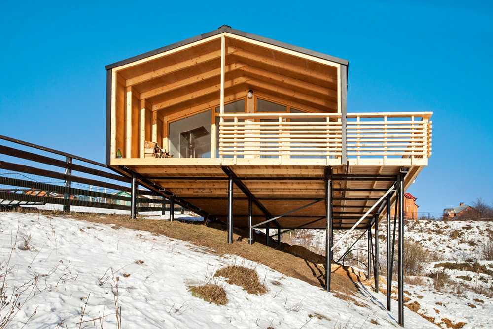 - Дерево менее прочное, и сделать каркас, который можно легко погрузить и перевезти, сложнее, но возможно. Всё зависит от размеров. Можно просто построить деревянный домик на металлической раме или на прицепе. Дерево, конечно, предпочтительнее, так как теплее и легче.