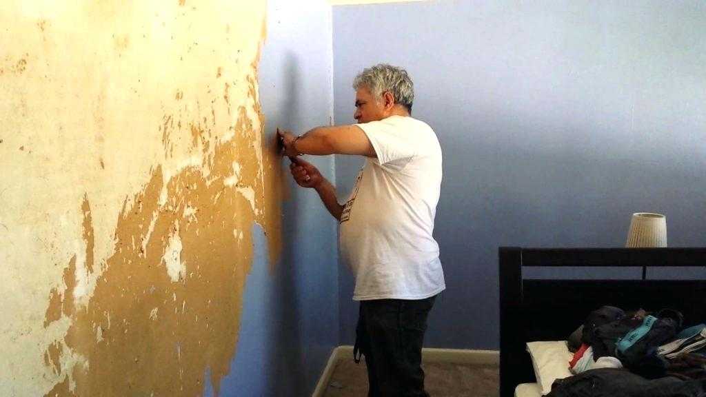Сначала всё смачивают в воде, потом материал соскребают со стены шпателем. В конце просто берут чистую тёплую воду для промывания. Качество работы легко проверить, проведя рукой по поверхности. При появлении грязи операция требует повторения.