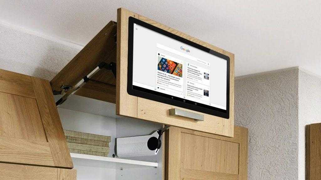 Наиболее популярное место, чтобы подвесить ЖК-панель – над холодильником. Это допустимый вариант.