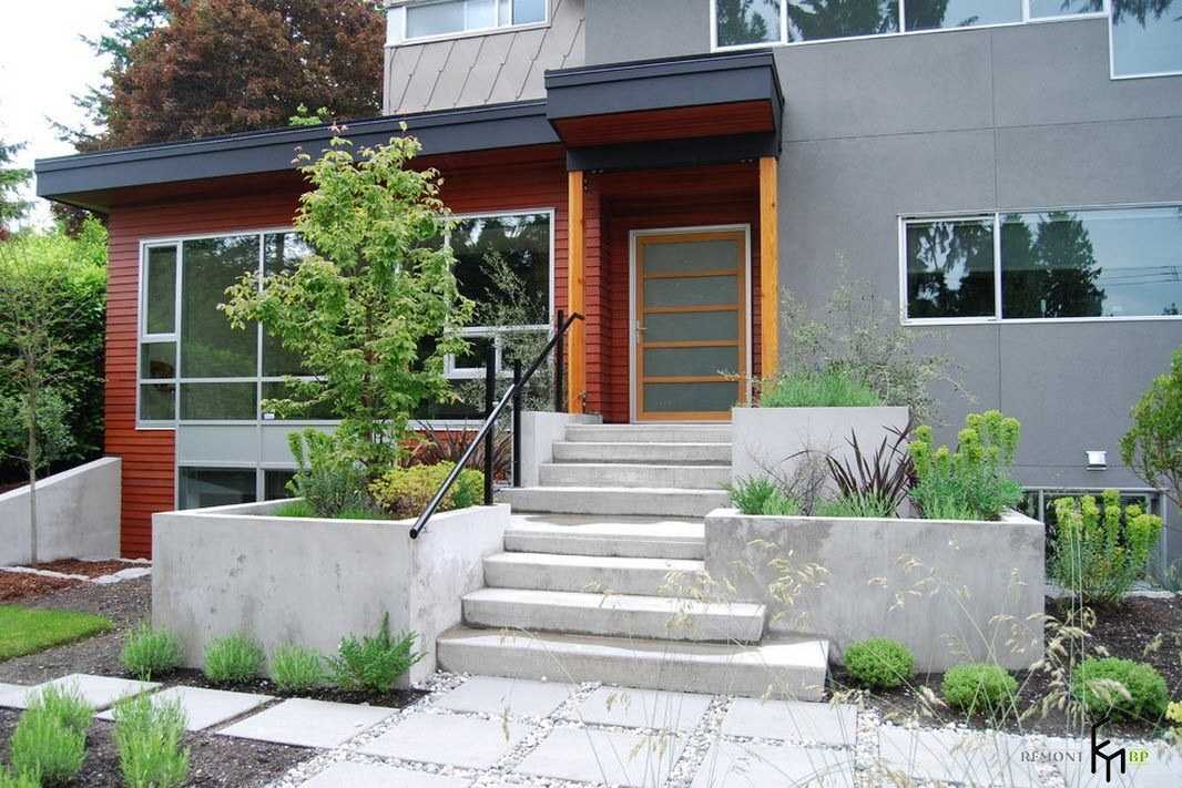 Самостоятельно проще всего изготовить односкатный навес. В зависимости от расположения входной лестницы, он может примыкать к дому короткой или длинной стороной. Двускатные крыши практичнее – снегу труднее удержаться на них и вода стекает быстрее. Однако с монтажом могут возникнуть трудности. Для арочных и полуарочных навесов рекомендуется использовать гнутый металлический профиль. Конструкция впечатляет, особенно при использовании покрытия из поликарбоната. Если входная лестница расположена перпендикулярно фасаду, делают арку, а если параллельно – полуарку. Более сложные формы крыши лучше оставить профессионалам.